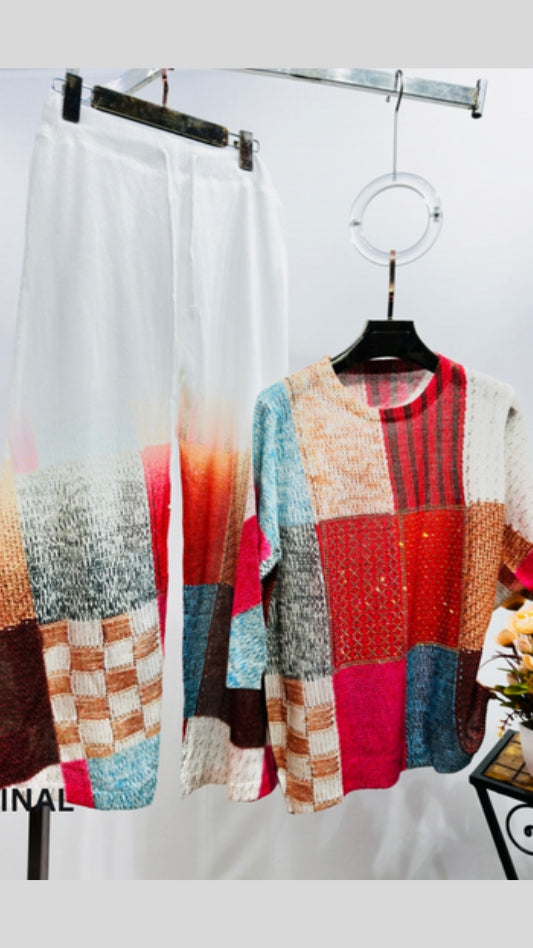 This set includes a flowy top and matching bottoms, both featuring an eye-catching print that makes a bold fashion statement. The relaxed fit and flowy design offer ease of movement and a flattering silhouette, making it ideal for various occasions. Top has turn round neck, printed and long sleeves. Pant has wide leg straight pants with full elasticated, printed and draw string.