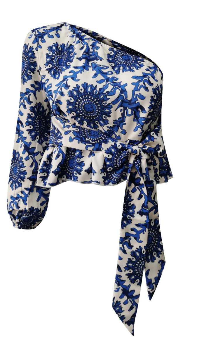 One Shoulder Bow Tie Front Ruffle Top FC1873