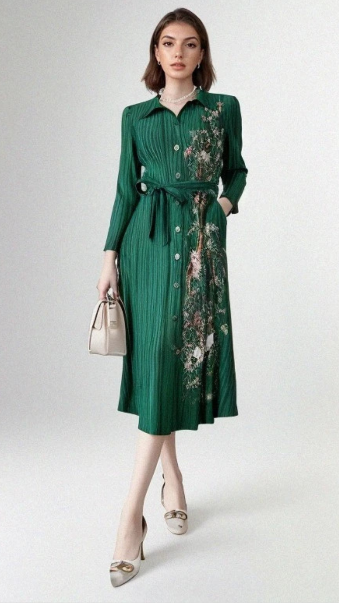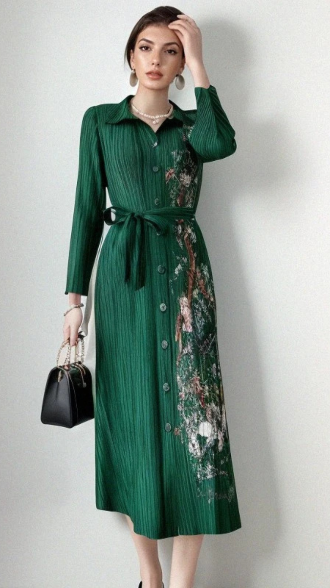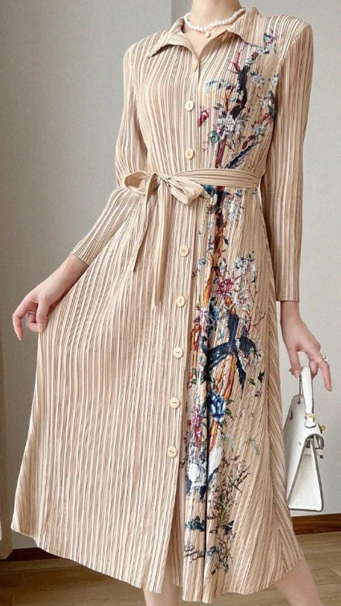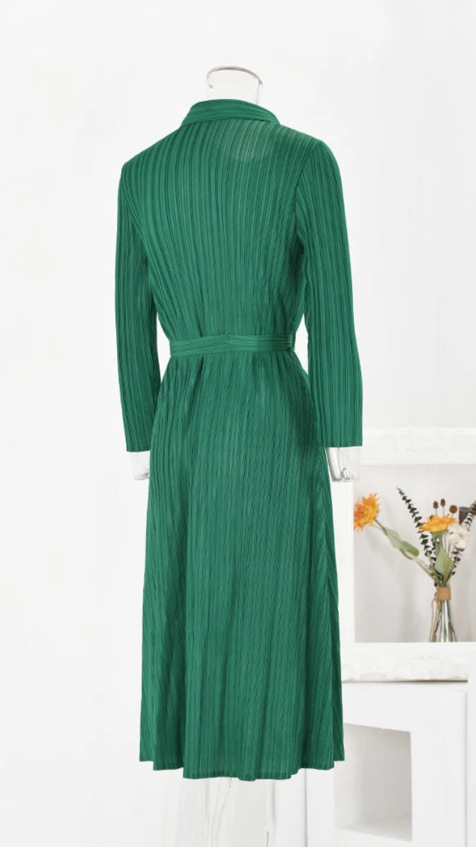 Introducing the Pleaded A-Line Shirt Dress, a stylish and versatile addition to any wardrobe. The pleated design creates a flattering A-line silhouette, while the shirt dress style offers a sophisticated and timeless look. Made from high-quality materials, this dress is both comfortable and durable. Perfect for any occasion, from work to special events.