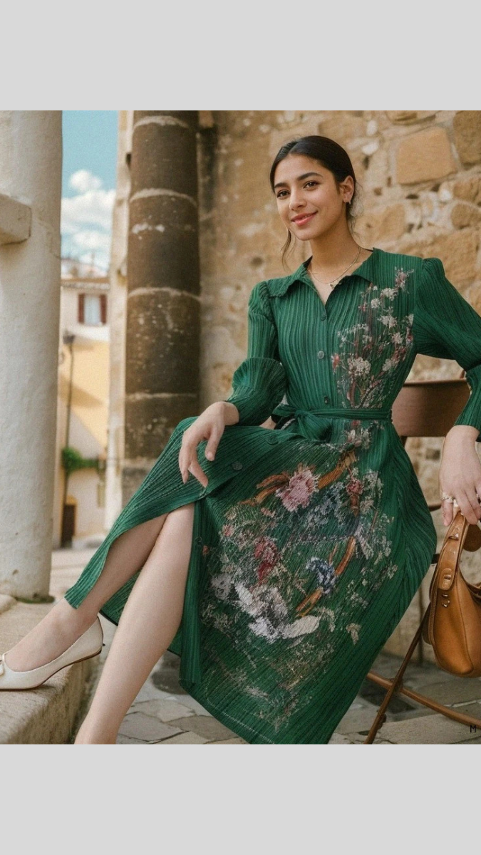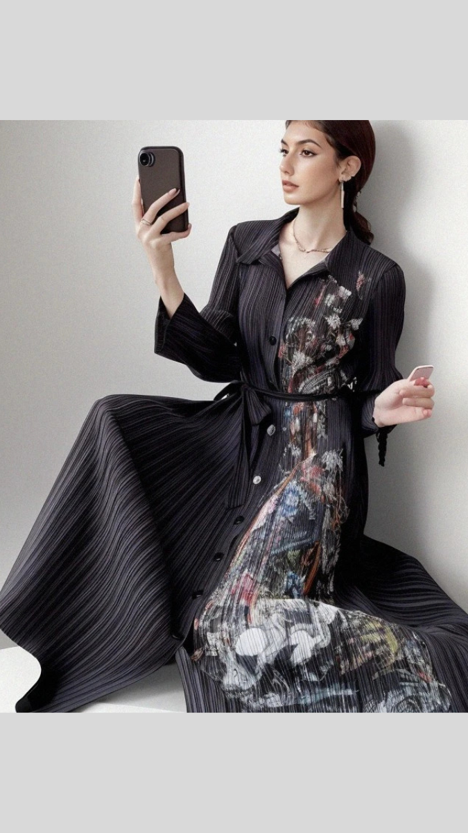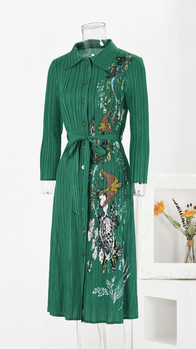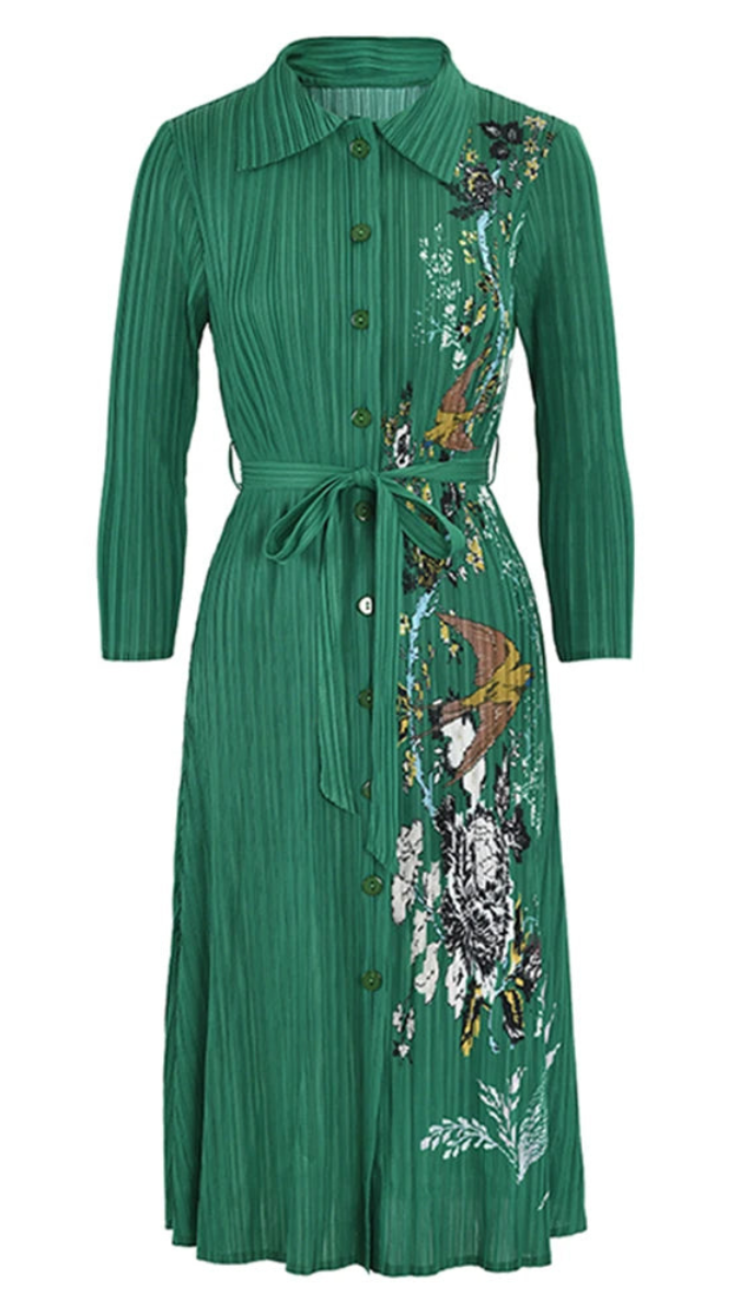 Introducing the Pleaded A-Line Shirt Dress, a stylish and versatile addition to any wardrobe. The pleated design creates a flattering A-line silhouette, while the shirt dress style offers a sophisticated and timeless look. Made from high-quality materials, this dress is both comfortable and durable. Perfect for any occasion, from work to special events.
