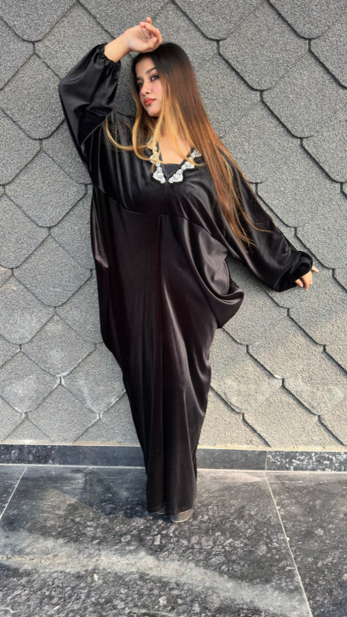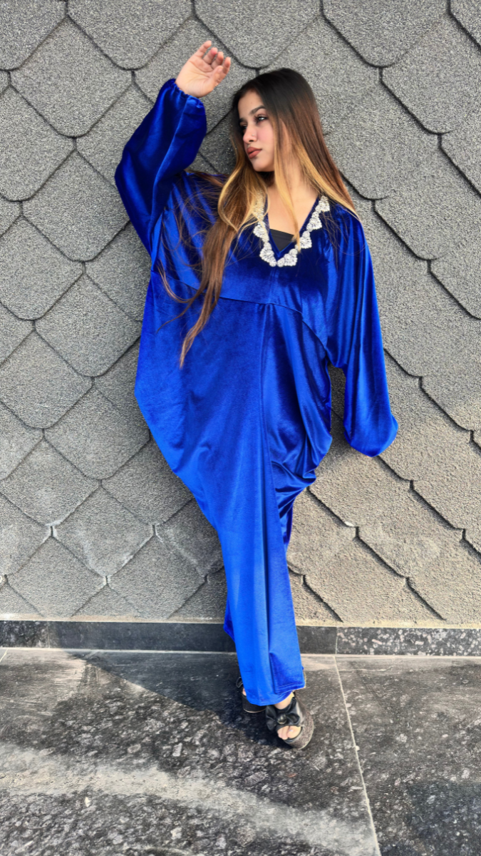 Elevate your wardrobe with this sophisticated velvet dress, featuring distinctive pleated detailing and generously cut loose sleeves. The luxurious velvet fabric drapes beautifully, creating an effortlessly elegant silhouette perfect for both formal occasions and upscale casual settings. The relaxed sleeve design offers comfortable movement while maintaining a refined aesthetic. Ideal for those seeking a statement piece that balances comfort with timeless style.