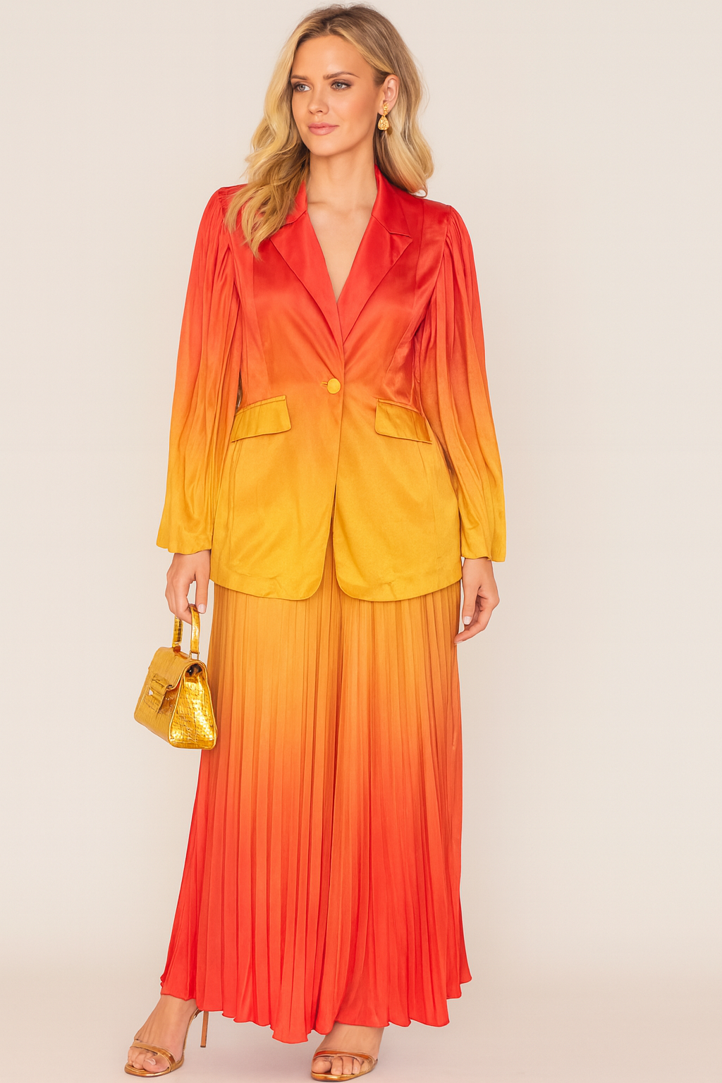Pleated Long Sleeve Ombre Slim Fit Lapel Suit FC1265