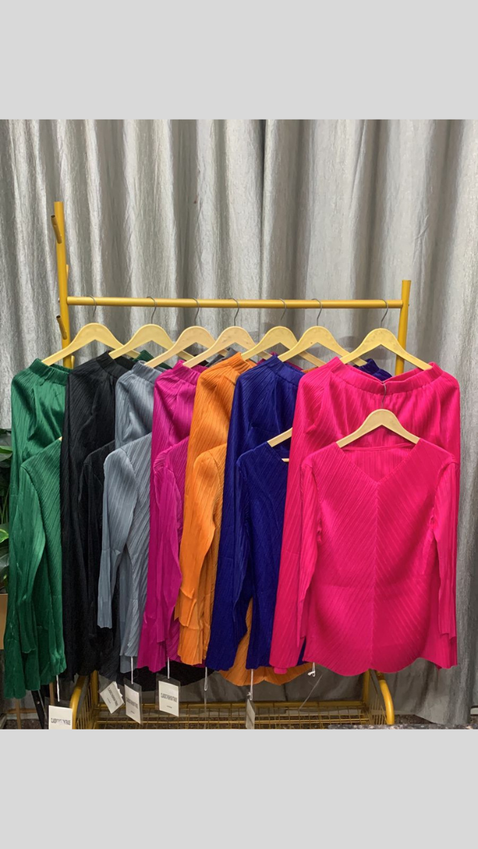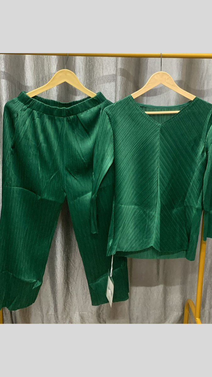 Elegant and contemporary, this pleated V-neck uneven hem top with pant co-ord set is designed to create a refined yet modern look. The top features a flattering V-neckline with delicate pleats that add texture and movement, while the uneven hemline brings a stylish, fashion-forward edge. Paired with comfortable matching pants, this set offers a balanced silhouette that is both chic and effortless. Perfect for workdays, brunch dates, or semi-formal occasions, this coordinated outfit blends sophistication with comfort.