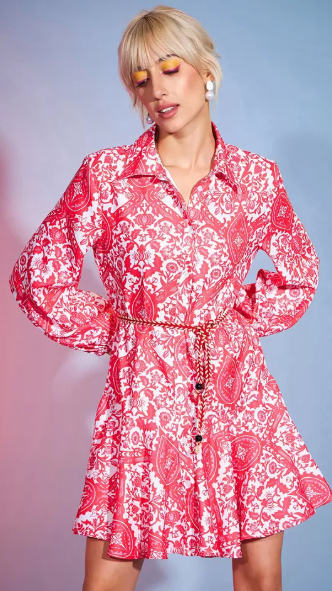 This Printed Balloon Sleeve Mini Dress combines playful volume with a vibrant print, offering a stylish statement for any occasion. Its balloon sleeves add a contemporary touch while providing comfortable movement. The mini length highlights your silhouette, perfect for versatile day-to-night wear. Crafted for a flattering fit, this dress brings both fashion-forward design and ease to your wardrobe.