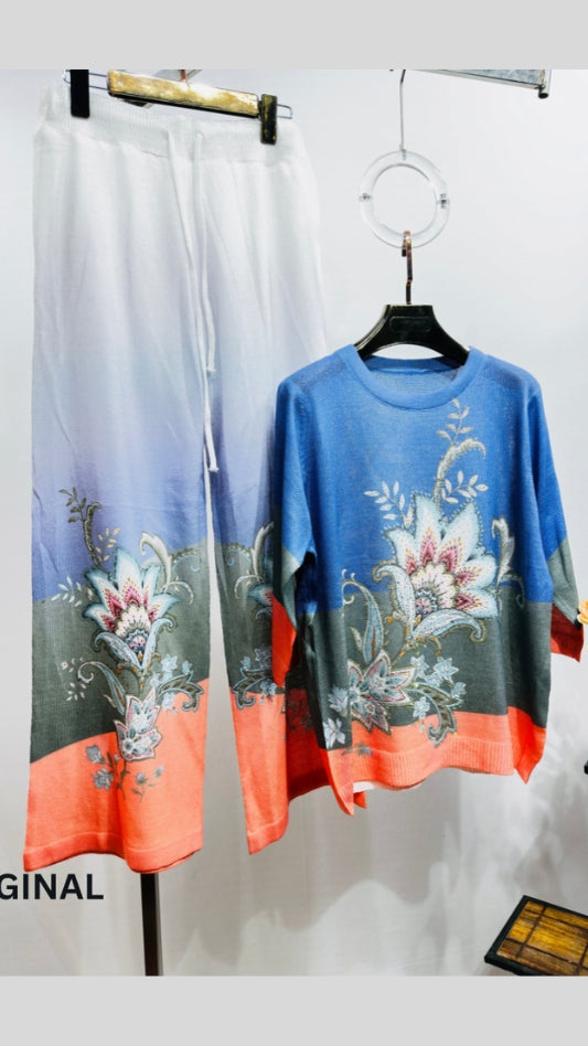 This set includes a flowy top and matching bottoms, both featuring an eye-catching print that makes a bold fashion statement. The relaxed fit and flowy design offer ease of movement and a flattering silhouette, making it ideal for various occasions. Top has turn round neck, printed and long sleeves. Pant has wide leg straight pants with full elasticated, printed and draw string.
