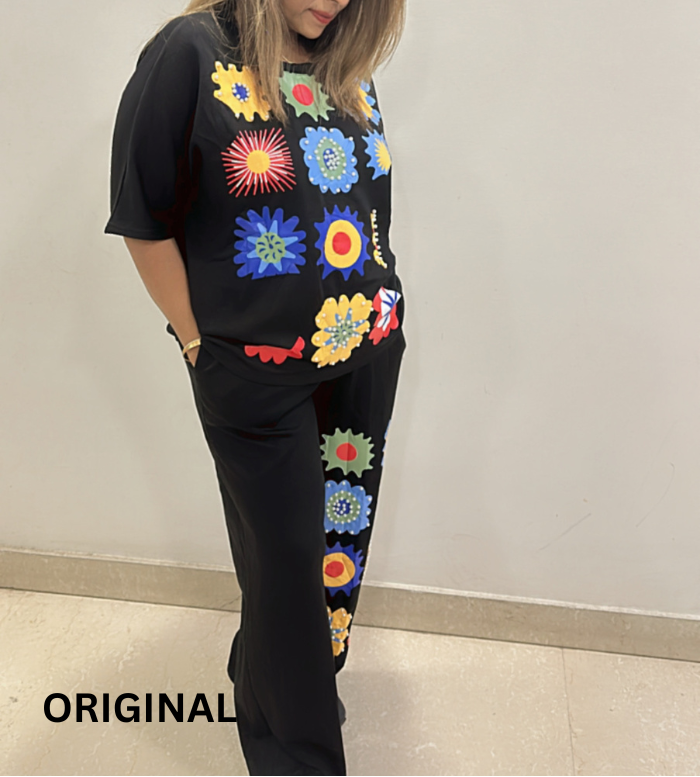Our coordinated set is summer-friendly color featuring pants with top is for sure a show-stopper. Top has round neck, half sleeves and print in front. Pants has ankle length, print on one side, pockets. Co- Ord is suitable from a day occasion, tonight's get-together.