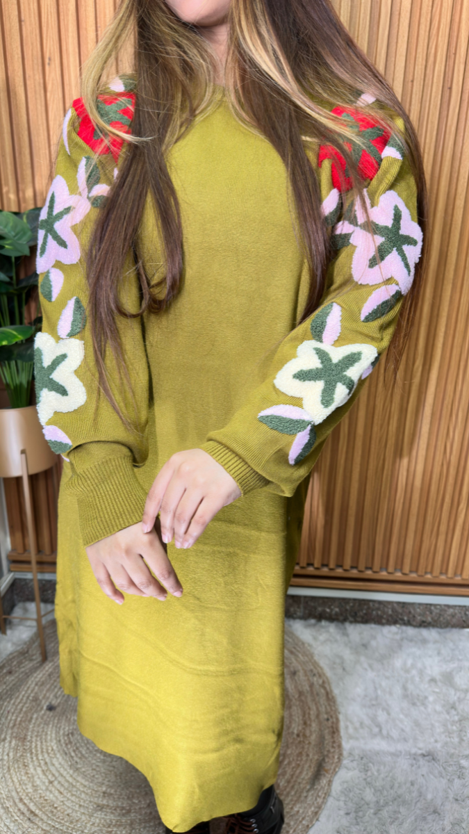 Elevate your wardrobe with this sophisticated knitting midi dress, featuring an eye-catching starfish embellishment on the sleeves. Crafted from premium knit fabric, this piece delivers both comfort and elegance for versatile styling. The midi length offers a refined silhouette perfect for casual outings or semi-formal occasions. The intricate sleeve detailing adds a distinctive touch that sets this dress apart, making it an ideal choice for those seeking contemporary fashion with thoughtful design elements. A timeless addition