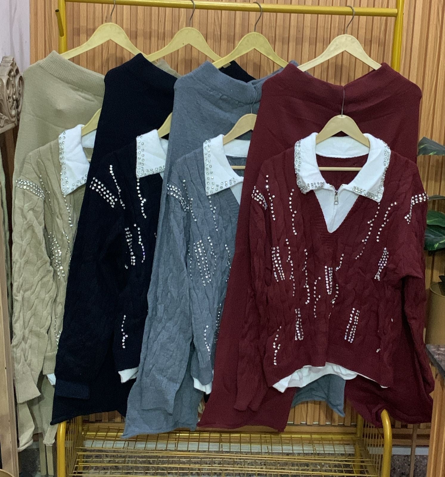 This Rhinestone Collared Coord Set offers a soft and comfortable fit for all-day wear. The rhinestone collar adds a touch of elegance to this coordinated set, perfect for any occasion. Crafted with high-quality materials, this set is both stylish and comfortable, making it a must-have for any wardrobe.
