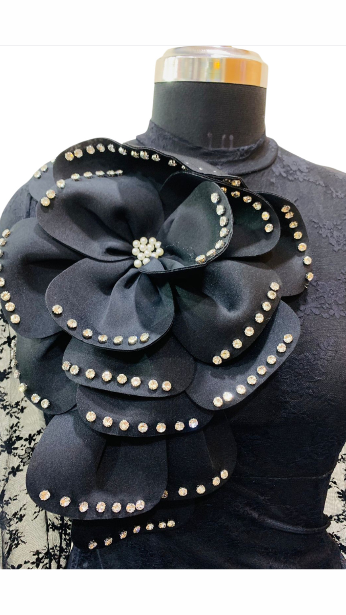Rhinestone Flower With Net Sleeve Dress FC1759