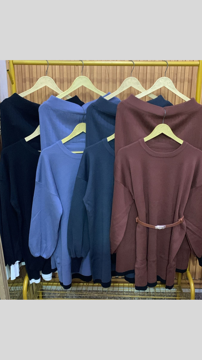 Round Neck Belted Top With A- Line Skirt Woolen Coord Set FC1986