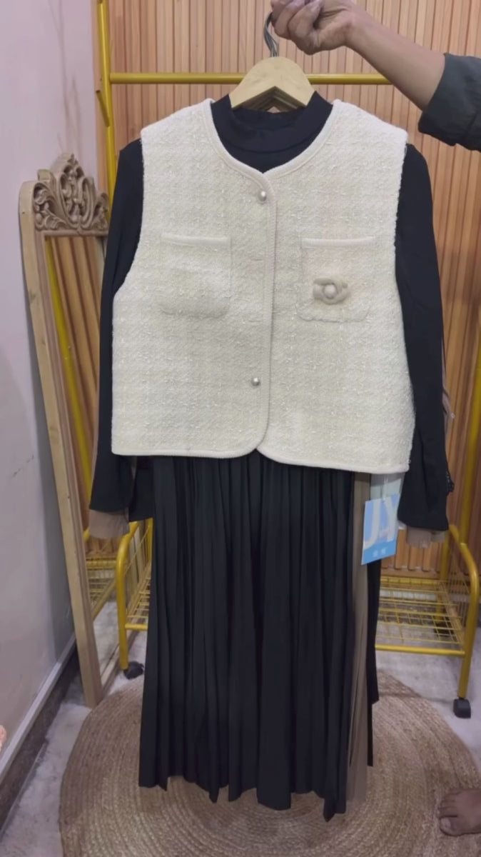Ruffle Dress With Tweed Sleeveless Blazer FC1977