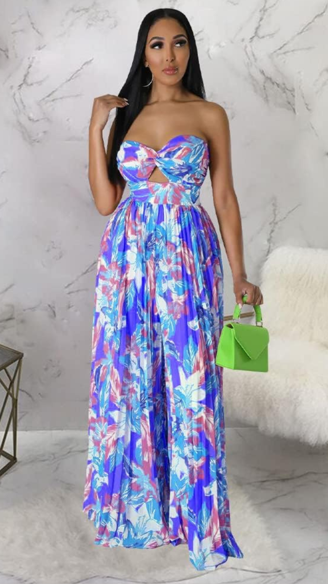 Sexy Printed Pleated Off Shoulder Jumpsuits FC1838