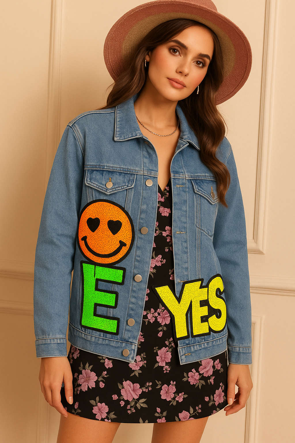 Blossom into style with our Smiley Embedded Denim Jacket, where classic denim meets the charm of floral elegance. This unique piece breathes new life into your wardrobe, making every outfit a fresh and fashionable statement. This jacket has full sleeves, two pockets in front, button closure and smiley embedded on it. Suitable for home, office, shopping, party, vacation, school, party and any occasions you want.