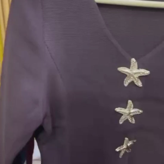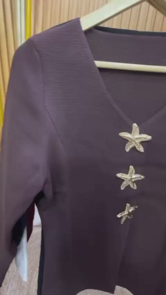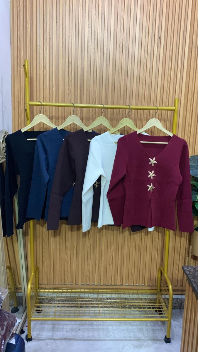 Elevate your winter wardrobe with this sophisticated woolen top, featuring a flattering V-neckline and distinctive starfish button detailing. Crafted from premium wool, this piece delivers exceptional warmth and durability while maintaining a refined silhouette. The button-front closure adds versatility, allowing you to layer effortlessly or wear as a standalone statement piece. Perfect for both casual and semi-formal occasions, this top pairs seamlessly with tailored trousers, denim, or skirts. The quality construction ensures lasting comfort and style through multiple seasons.