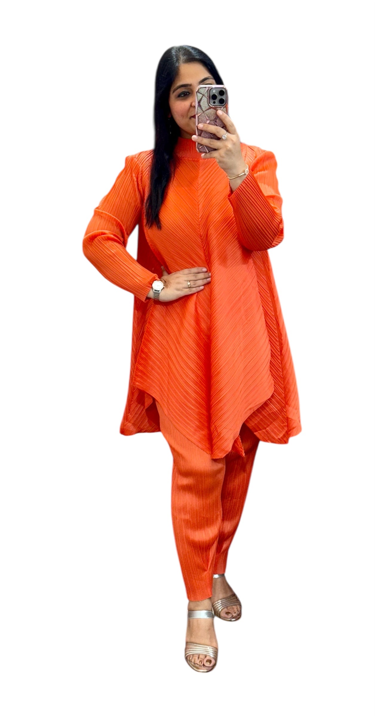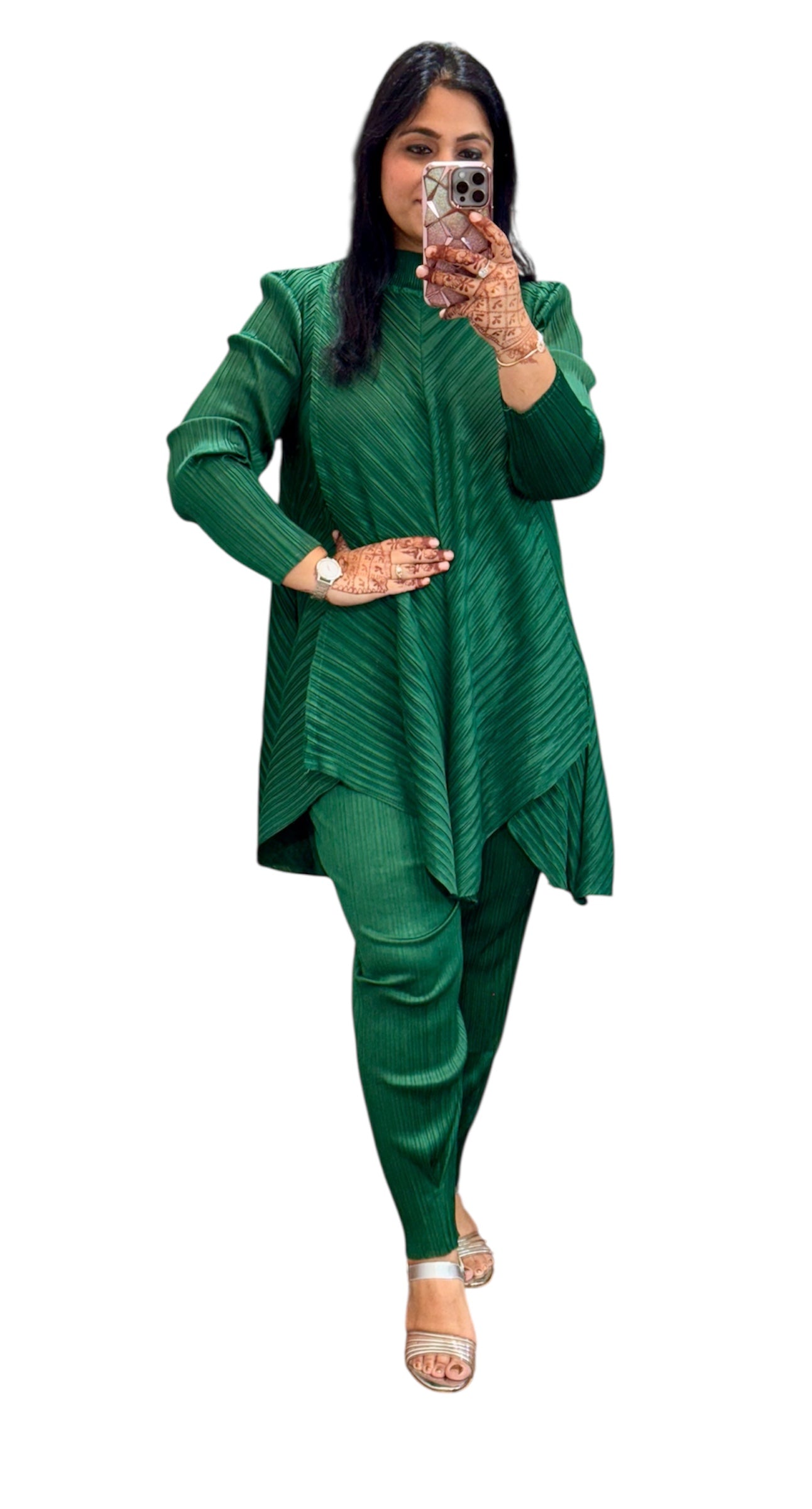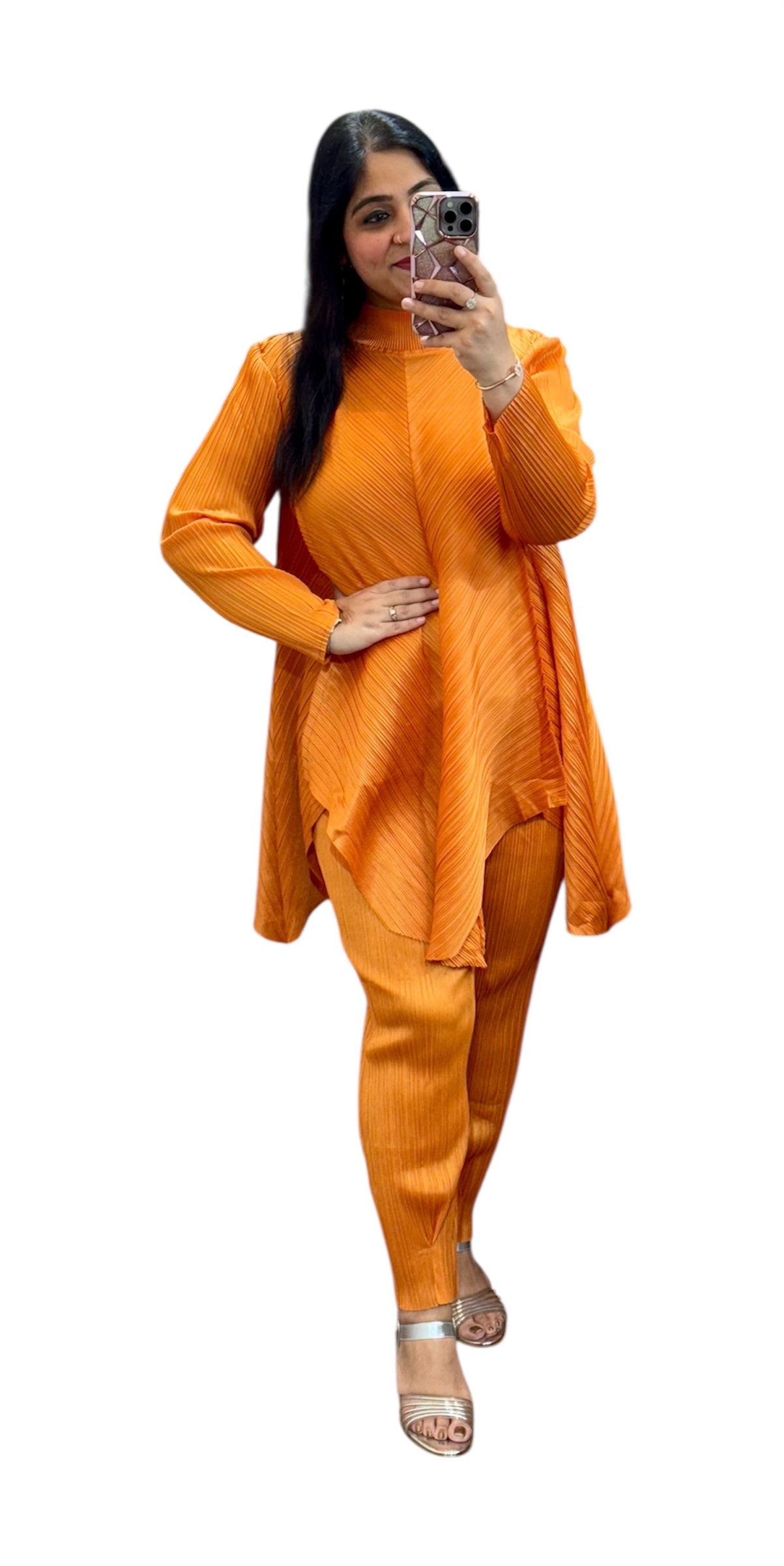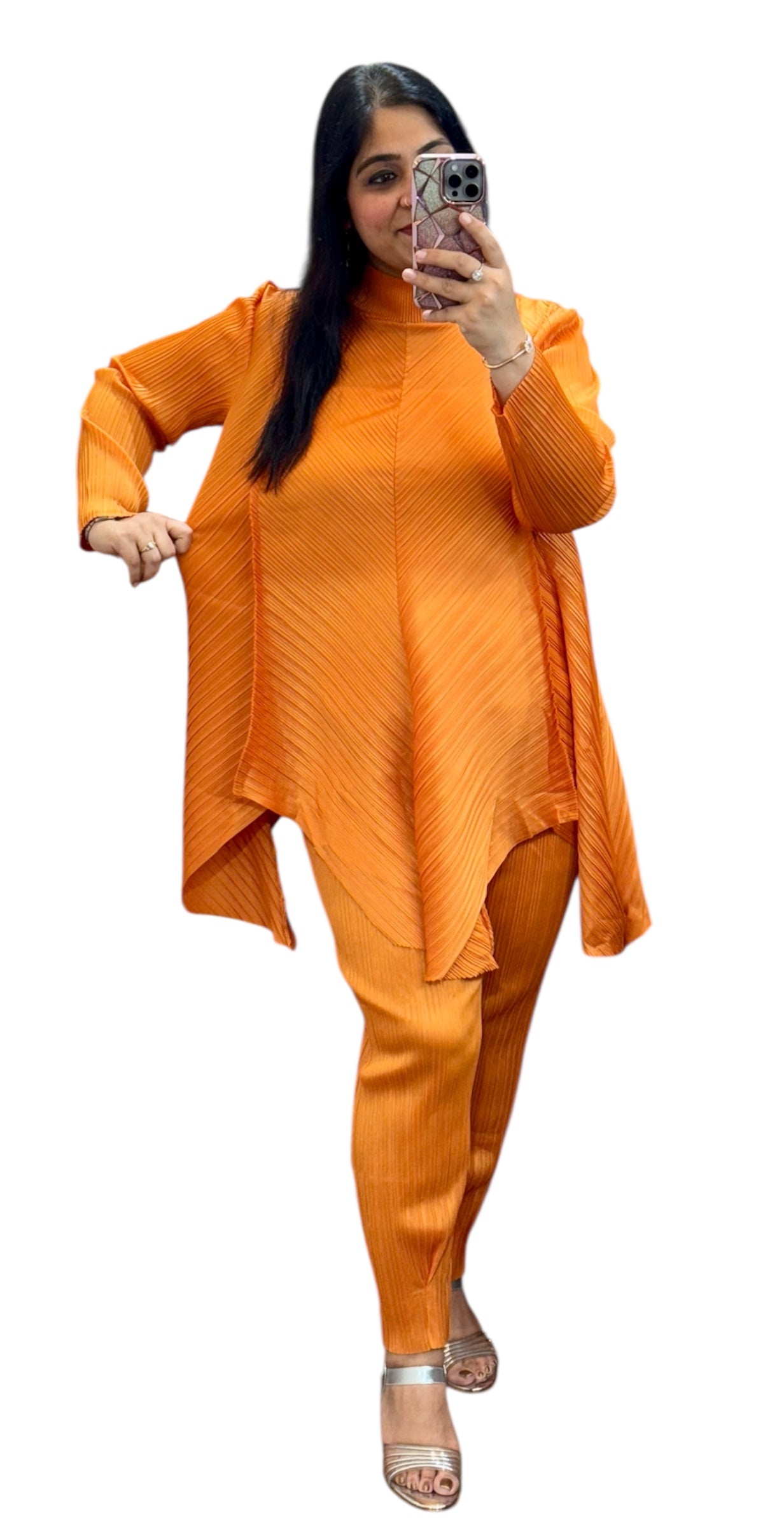 Introducing the Stylish Pleaded Coord Set, a perfect combination of fashion and functionality. This set features stylish pleats that add a touch of elegance to any outfit. Made with high-quality materials, it offers both comfort and durability. Elevate your wardrobe with this must-have set.