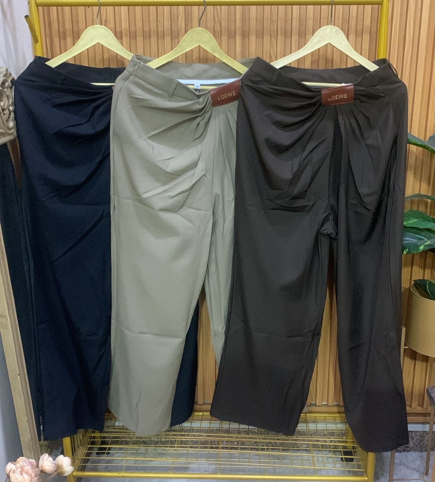 The Stylish Side Pleated Bottom combines wide-leg comfort with sophisticated side pleats for a refined look. Expertly crafted to ensure graceful drape and ease of movement, this piece enhances your silhouette while offering versatile styling options suitable for professional and casual wear. A smart choice for those seeking both elegance and comfort.