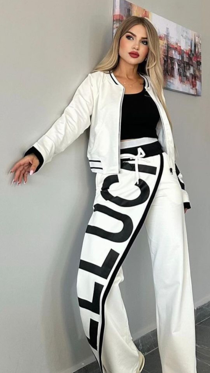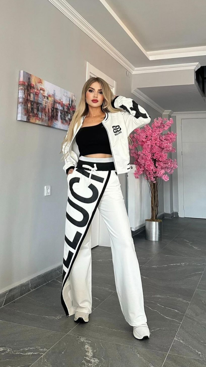 This Stylish Winter Co Ord Set set includes a trendy jacket, inner and a chic wide pant, perfect for making a fashion statement. Jacket has printed all over, chain closure in front, lapel collar and full sleeves. Inner has crop length, sleeveless and contras with jacket. Pant has elastic high waist pants and stripes. Suitable for office wear, beach wear, summer wear.