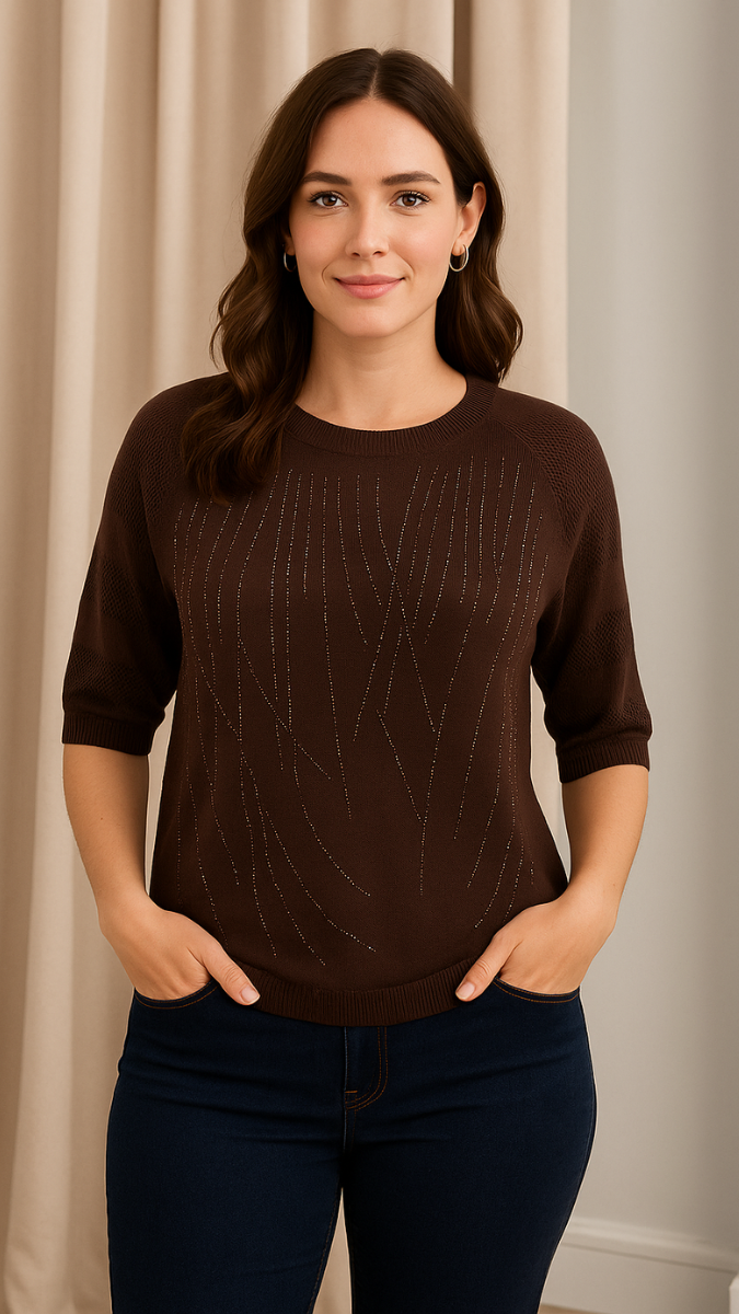 Step out in style in this Trending Rhinestone Top. This top has rhinestone designed in front, on hand, 3/4 sleeve, round neck and regular fit. Suitable for casual look and daily wear.
