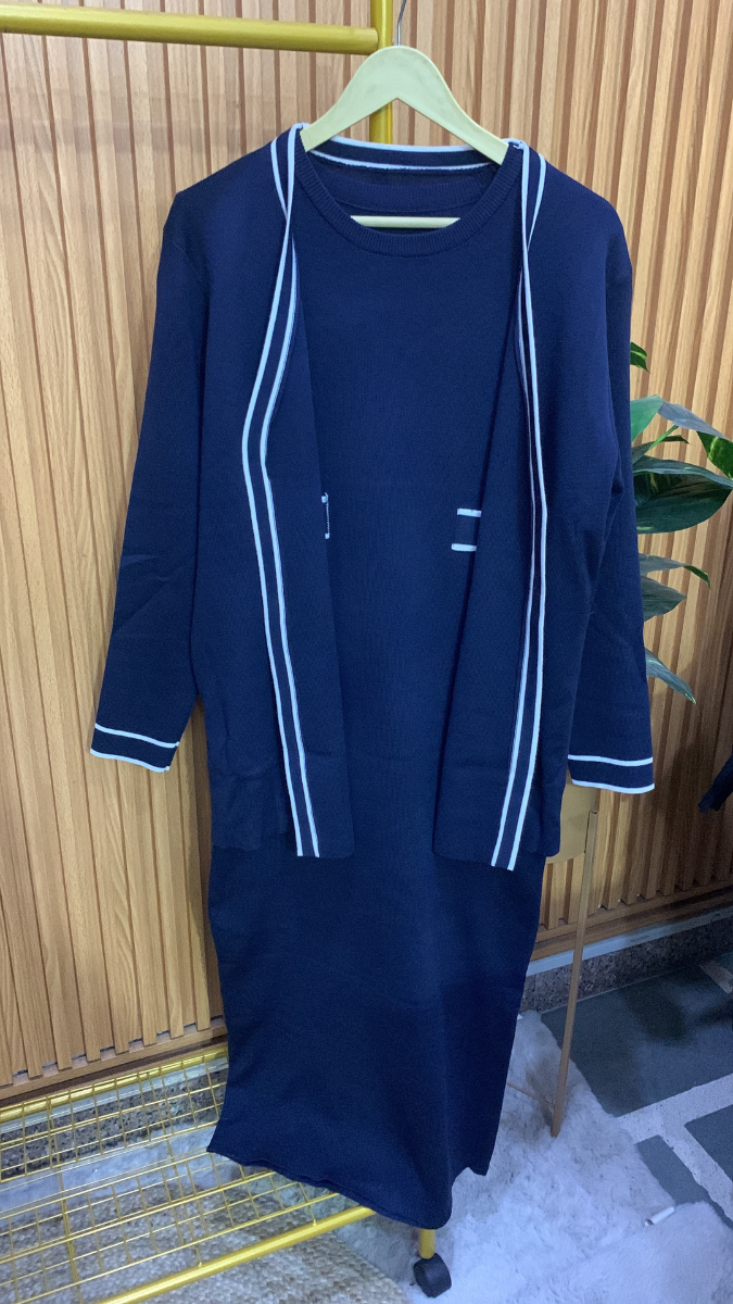 V Neck Full Sleeve Long Sweater With Round Neck And A- Line Dress FC1989