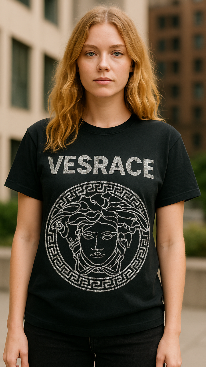 Step out in style with this eye-catching T-Shirt featuring vesrace design made of rhinestone on chest, half sleeves and round neck. It offers a comfortable fit and a touch of elegance . Perfect for casual or smart-casual occasions, this versatile T-Shirt is a must-have.