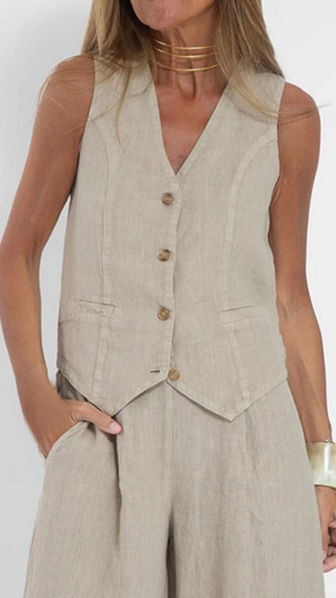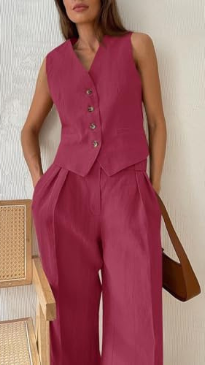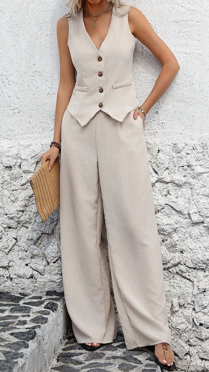 Upgrade your wardrobe with our Vest Coat with Loose Pant Coord Set. Featuring a stylish vest coat and comfortable loose pants, this set offers a versatile and trendy look. Perfect for any occasion, this coord set will keep you looking effortlessly chic all day long.