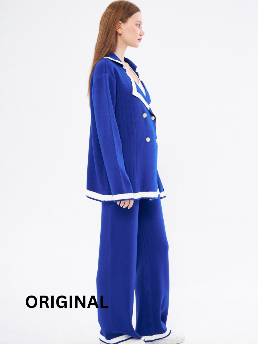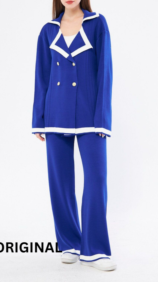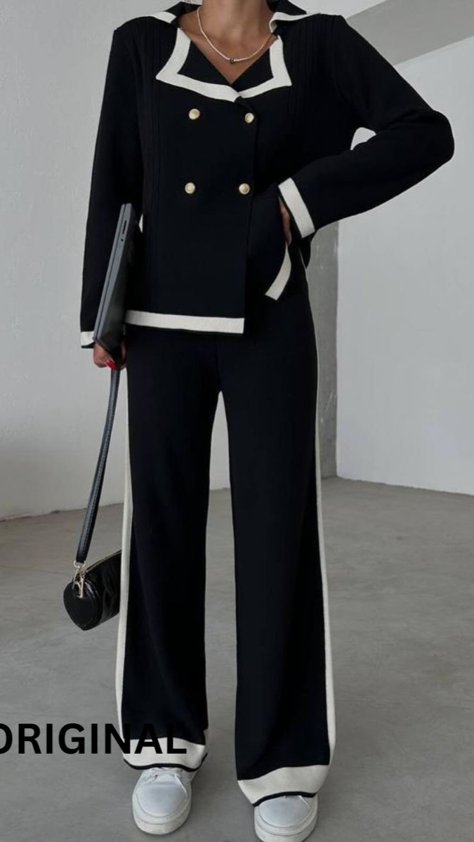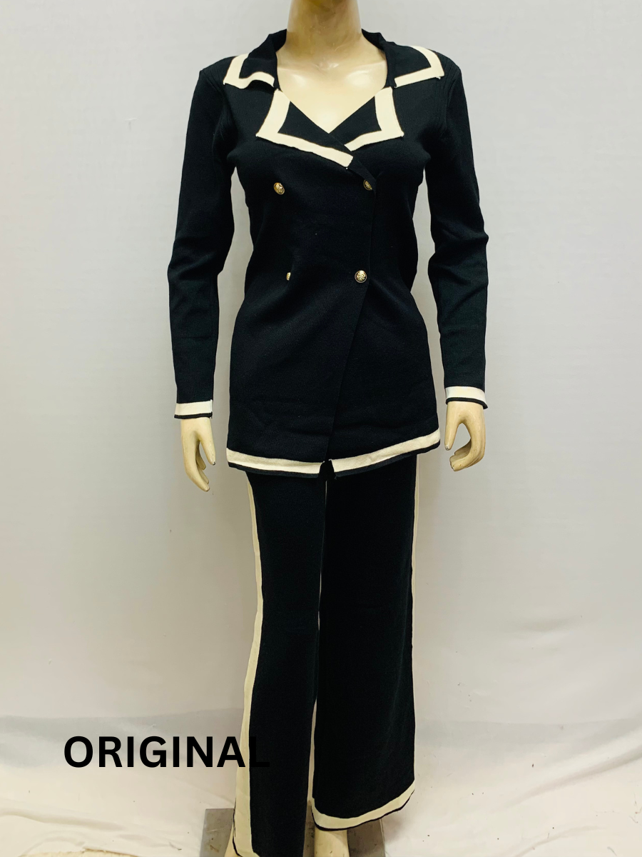Upgrade your wardrobe with this Designer Winter Knitted Co Ord Set. This stylish and high-quality set is perfect for the colder months, keeping you warm and fashionable. It features a unique design and superior fabric, providing both comfort and style. Our Coord set features Top and Pant. Top has white stripe over neckline, collar neck, long sleeves and long length. Pant features elastic waist, white stripe at bottom and ankle length. From a day occasion, tonight's get-together.