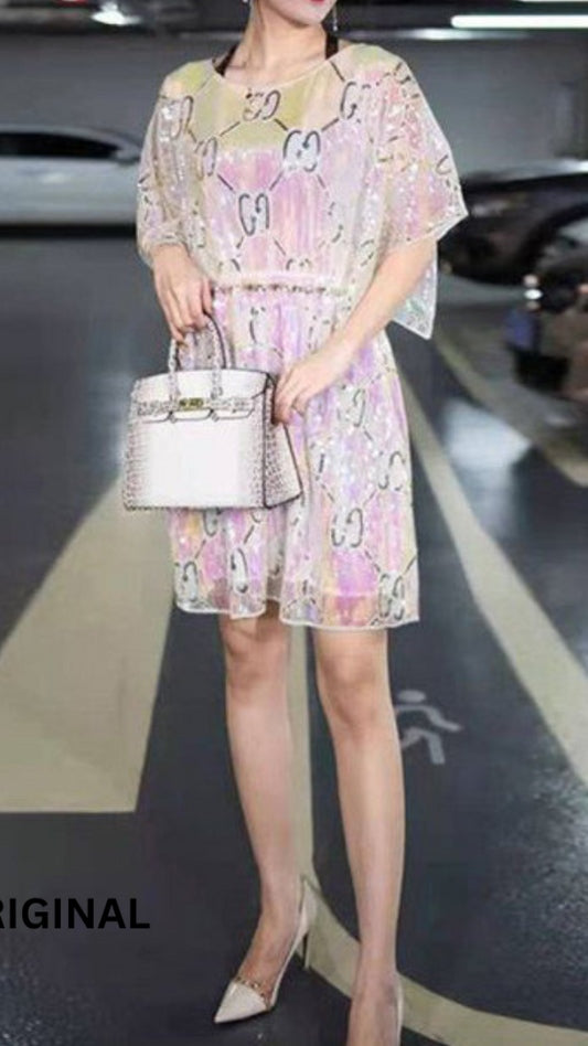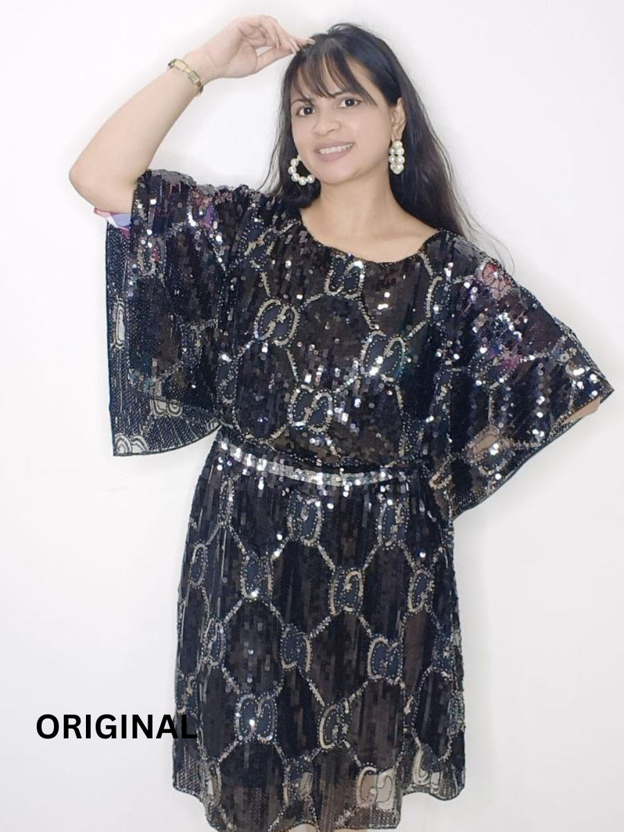 Introducing our Elegant Women's Short- Sleeved Fashion Pullover Whole Body, the perfect addition to your wardrobe. This dress features half sleeves , sequenced, round neck, below knew length and belt. Perfect for daily wear, nightclub, date, party, casual, dating, vacation and beach.